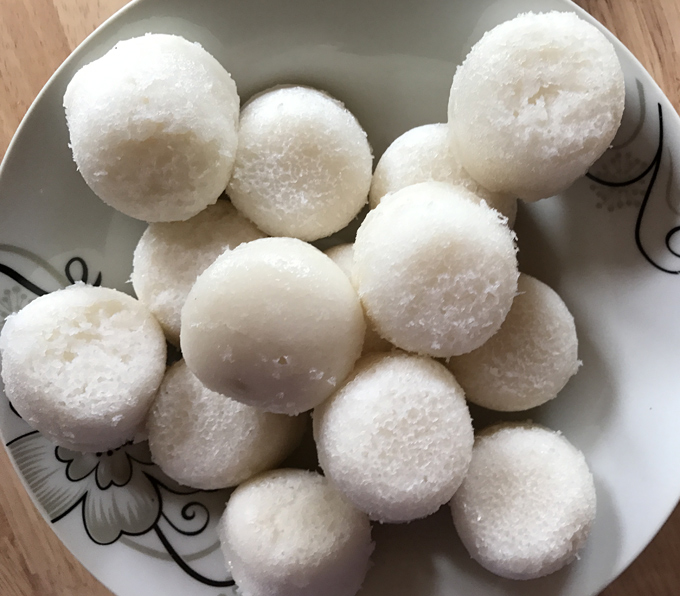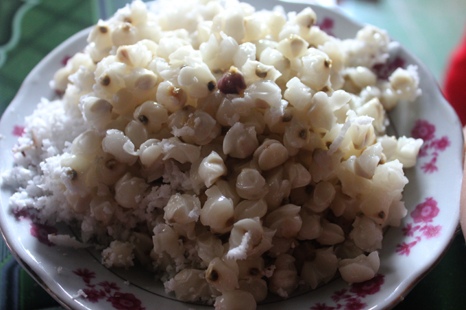 Bánh cuối hấp ăn kèm nước cốt dừa cho hương thơm quyến rũ.