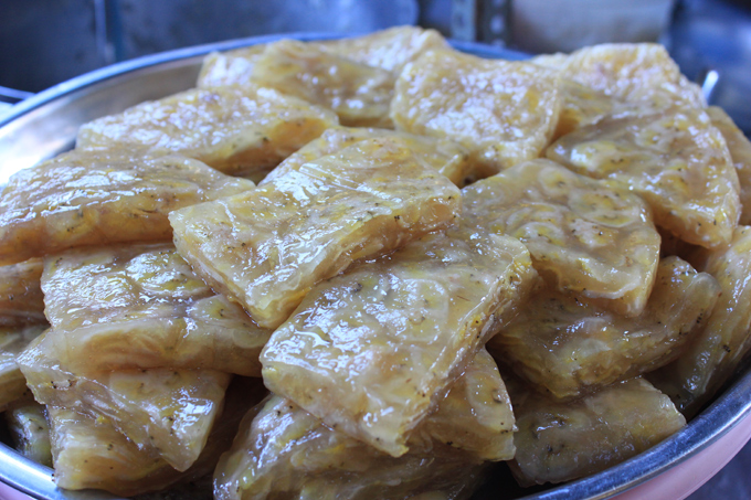 Chuối chiên là món ăn vặt có lớp vỏ bên ngoài giòn rụm, thơm phức.