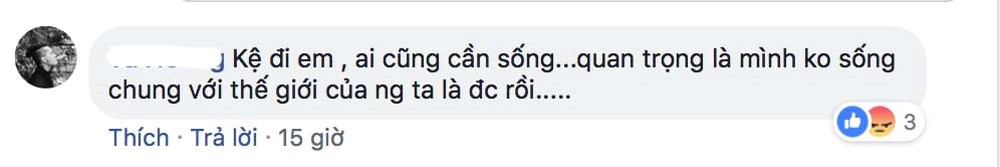 Còn với các fan thì tỏ rõ sự bức xúc cho cô, facebooker Tu Hoang “Kệ đi em, ai cũng cần sống...quan trọng là mình không sống chung với thế giới của người ta là được rồi…”