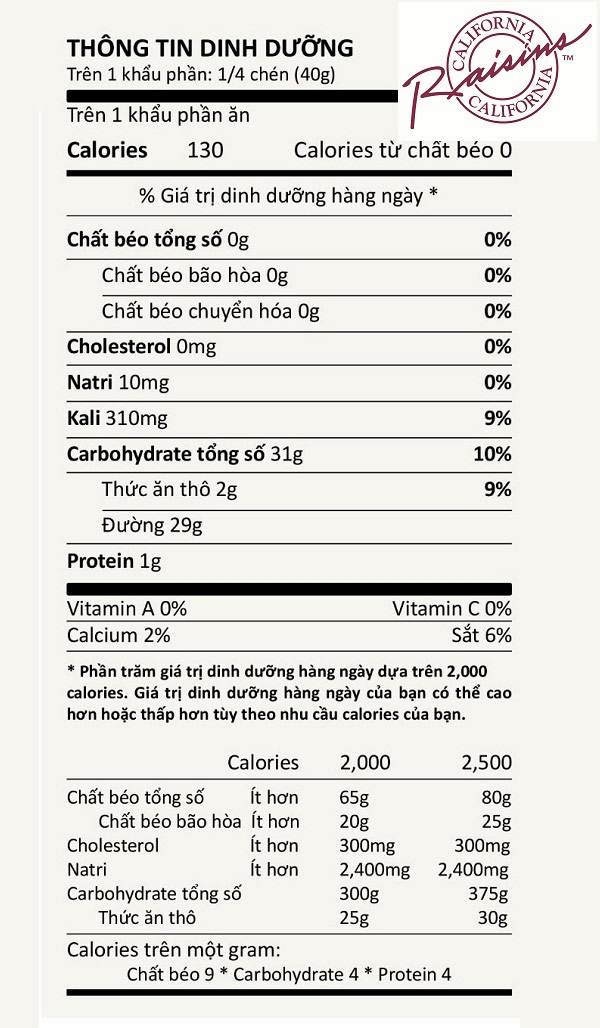 Nho khô là thực phẩm giàu dinh dưỡng, tốt với sức khỏe con người. Ảnh: Hiệp hội nho khô bang California