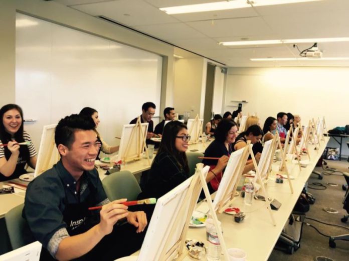 Một lớp vẽ tại Inspired Art Wine, Costa Mesa. (Hình: Karen Nguyễn cung cấp)