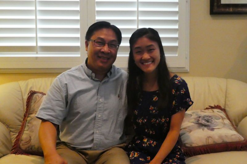 Audrey Nguyễn và cha là ông Sơn Nguyễn tại nhà ở Anaheim Hills. (Hình: Thiện Lê/Người Việt)