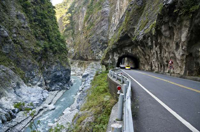 Taroko Gorge Road- Đài Loan: Con đường núi quanh co này sẽ khiến cho tim bạn đập mạnh bởi đó là một con đường hẹp với những đường ngoặt qua địa hình cực kỳ gồ ghề và không ổn định trên những ngọn núi và vách đá.