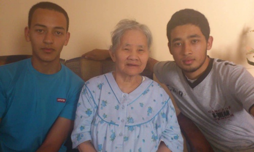 Mihoubi, ngoài cùng bên trái, chụp ảnh với bà nội là người Việt, và người em họ, khi bà còn sống. Ảnh: Nhân vật cung cấp.