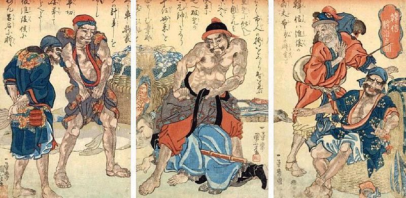 Phác họa cảnh Hàn Tín chịu nhục phải chui háng.