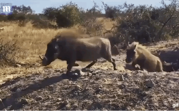 Đàn lợn lòi bỏ chạy theo các hướng khác nhau, nhưng một trong số chúng không đủ may mắn để thoát khỏi báo đốm.