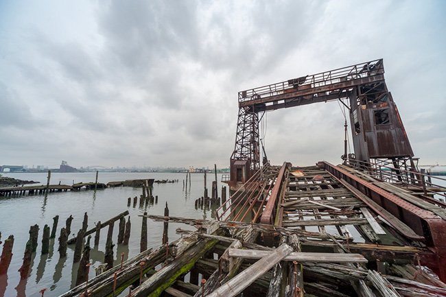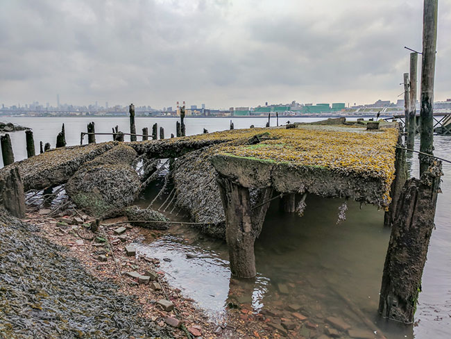 Một số cơ sở gần như không thể nhận ra. Các tòa nhà của hòn đảo trước đây là văn phòng, công xưởng, ký túc xá... Bây giờ nó chìm, bao phủ trong tảo bẹ, và hoàn toàn ngập nước khi thủy triều cao.