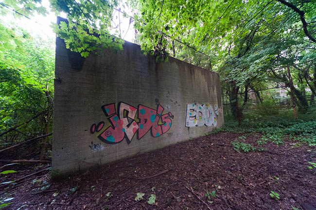 Phần lớn thiết bị đã bị bỏ lại khi hòn đảo bị bỏ hoang vào năm 1963. Nhưng các dấu hiệu của việc thăm viếng bất hợp pháp bị rải rác, bao gồm cả graffiti này trên một sân bóng tường.