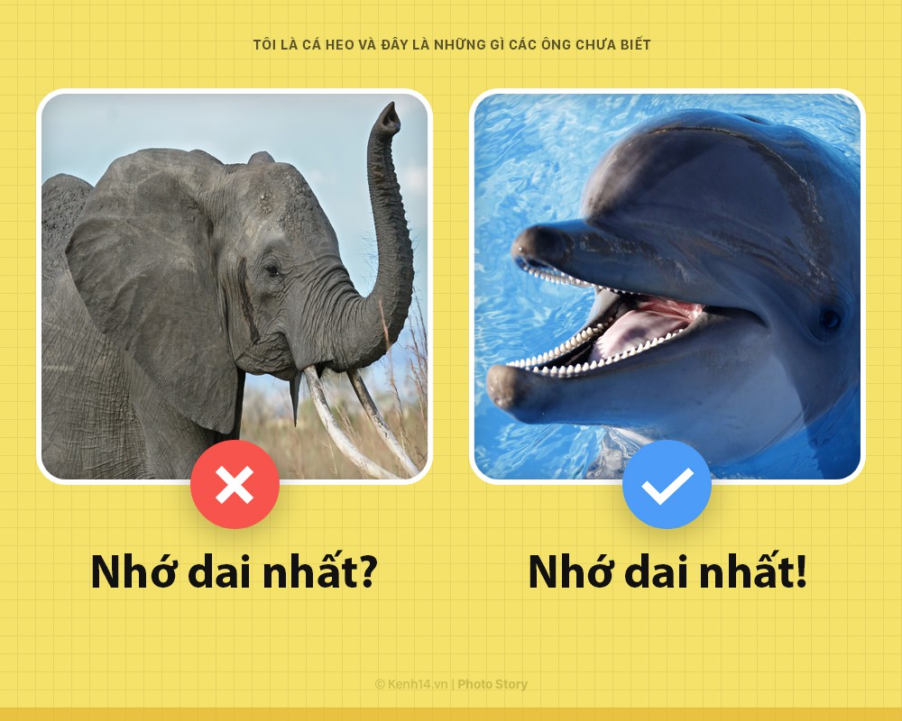 Nhưng cái gì không đứng nhất thì hãy bỏ qua. Cái nhất của cá heo tôi nằm ở trí nhớ: chúng tôi có thể nhớ được sự việc một cách chi tiết với khoảng thời gian từ trên 20 năm trước. Về khoản này, cá heo tụi này còn vượt xa cả voi và tinh tinh.