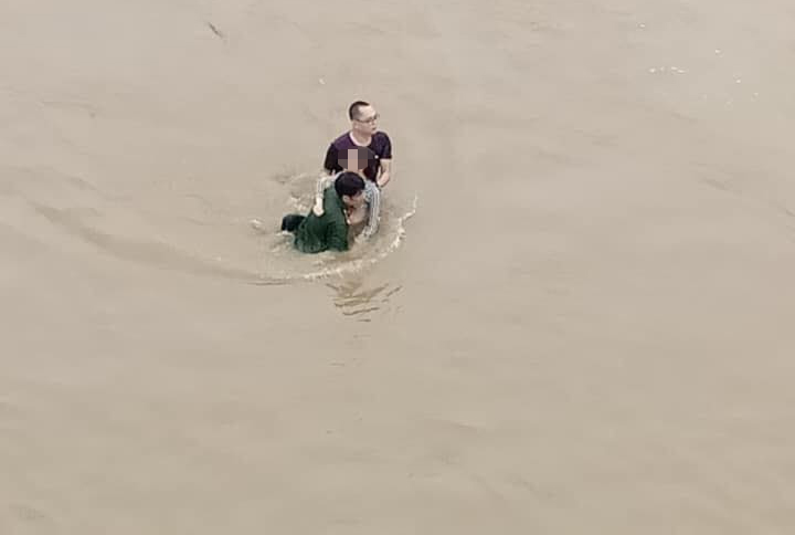 Cũng may, lúc chuẩn bị vào đến bờ có một người tên Hoàng đang công tác tại Bệnh viện Đa khoa tỉnh Yên Bái lao xuống hỗ trợ