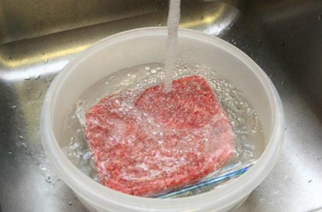 Tuy nhiên, sử dụng phương pháp này bạn sẽ phải dành thời gian cho miếng thịt nhiều hơn là dùng phương pháp rã đông trong tủ lạnh hay lò vi sóng.