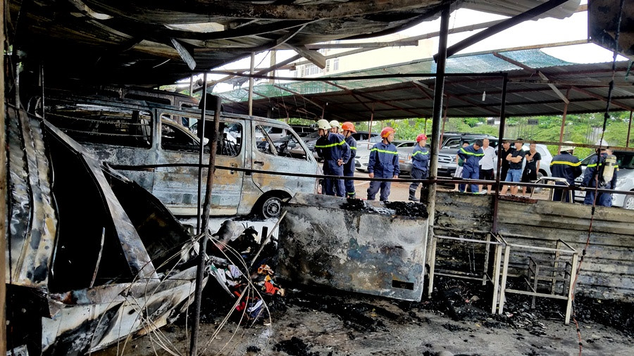 Thời điểm xảy ra cháy, bên trong bãi giữ xe có hơn chục ô tô, xe tải đang đậu.