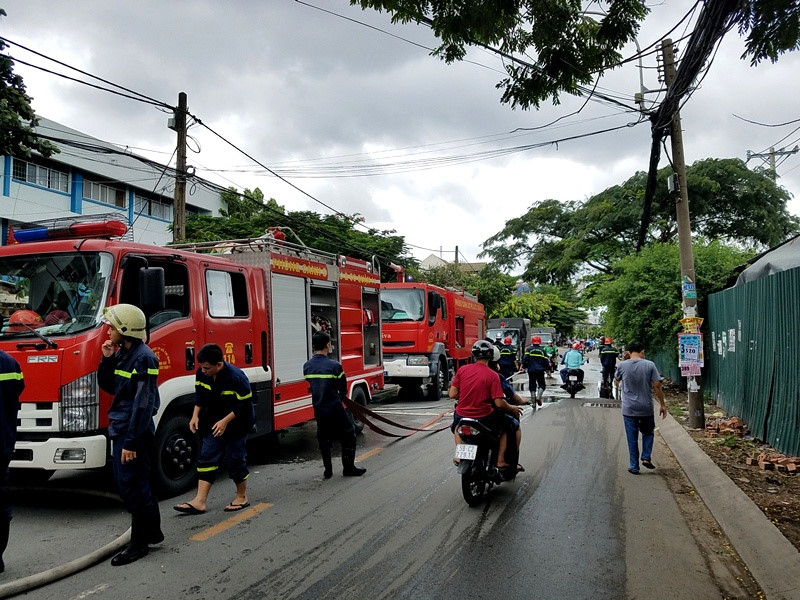 Cảnh sát PCCC TP.HCM điều nhiều xe chữa cháy cùng hàng chục cán bộ chiến sĩ đến hiện trường dập tắt đám cháy.