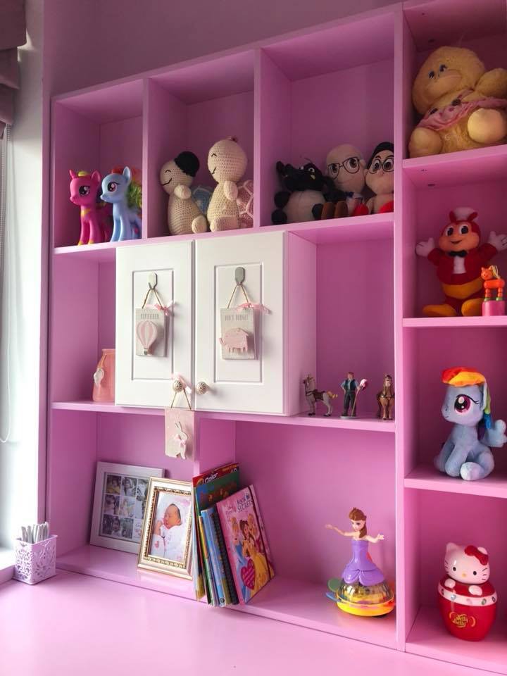 Ở phòng dành cho các con, màu sắc hồng, xanh tươi tắn được Ốc Thanh Vân thiết kế theo sở thích và giới tính của bé.