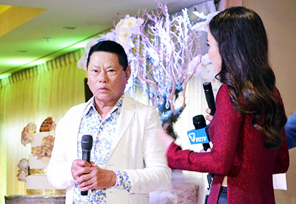 Tỷ phú Hoàng Kiều trả lời phỏng vấn của phóng viên Ái Hiền từ Houston, Texas qua tham dự. (Thanh Phong/Viễn Đông)