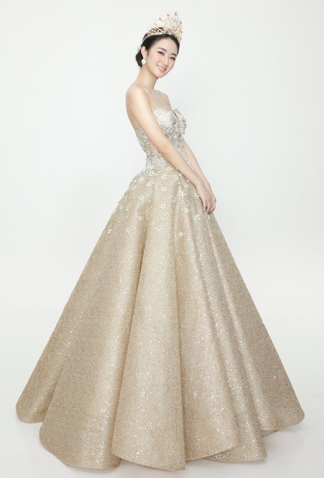 Thu Ngân xuất hiện rạng rỡ và xinh đẹp trong bộ đầm dạ hội lộng lẫy của nhà thiết kế Lê Long Dũng