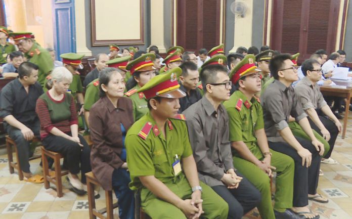 Bà Phan Angel (hàng thứ hai, b́a trái) bị kêu án 14 năm tù giam. (H́nh: Thanh Niên)