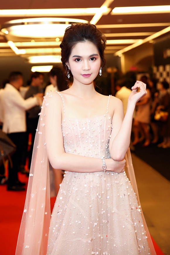 Ngọc Trinh xuất hiện tại sự kiện, đẹp lung linh với đầm hồng đính ngọc trai.