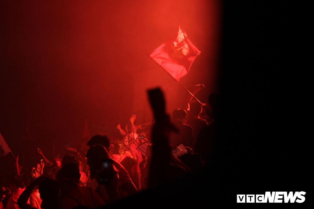Pháo sáng rực rỡ cả sân vận động.