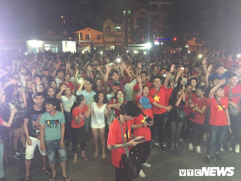 Cổ động viên Thủ đô đổ xô ra đường ăn mừng chiến thắng. (Ảnh: Xuân Trường)