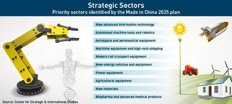Thực chất đây là trọng điểm chiến lược quốc gia của Trung Quốc nhằm xây dựng 10 ngành quan trọng về mặt công nghệ và chiến lược, tấn công vào những lĩnh vực độc quyền của các công ty phương Tây, nhất là Mỹ.