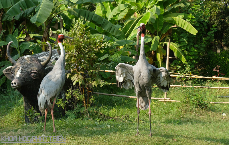 Đôi sếu đầu đỏ nhảy múa tự nhiên và rất dạn người.