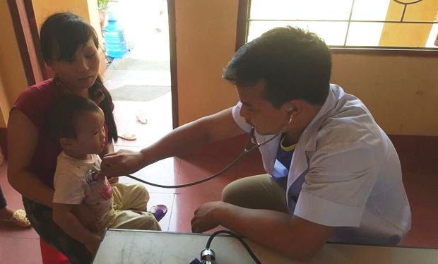 Các bác sĩ bệnh viện đa khoa Mường Lát đang thăm khám cho người dân vùng lũ