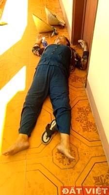 Một người dân xã Phổ Thạnh bị đánh ngất xỉu ở trụ sở UBND xã hôm 4/9/2018 Courtesy FB Người dân xã Phổ Thạnh