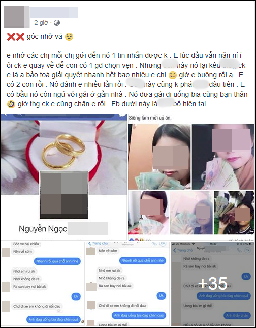 Theo lời tâm sự chua xót của chị H. thì chồng chị đánh vợ rất nhiều lần, 3 năm từ lúc cưới, chồng chị cặp kè gái gú nhiều không đếm xuể, bồ nhí của chồng chị hiện tại tên B.N đang sống ở Lào, không hiểu vì sao quen được nhau.