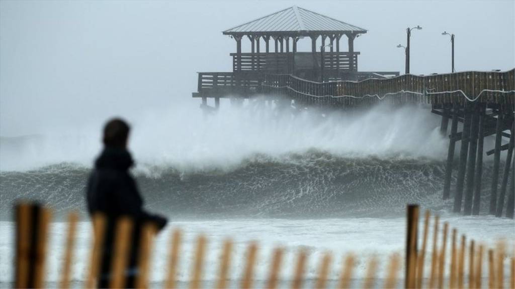 Sóng lớn đánh vào bờ vì siêu bão Florence