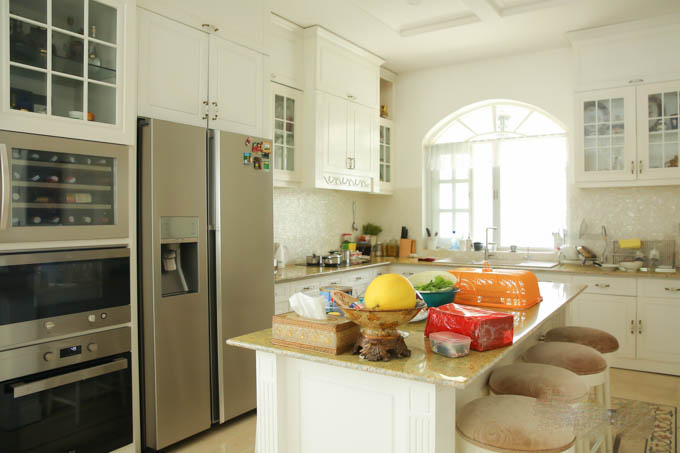 Khu vực bếp được Minh Khang xem là quan trọng nhất trong nhà. Vợ chồng anh thích ăn cơm nhà nên sắm tủ lạnh lớn, đầu tư đầy đủ dụng cụ làm bếp. Thúy Hạnh biết nấu nhiều món ăn ngon. Anh Minh Khang 'than phiền' nhiều năm nay anh không thể giảm cân vì được vợ chăm sóc kỹ lưỡng.