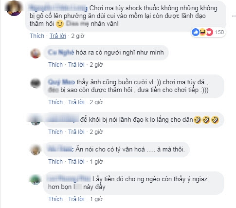 “Chơi ma túy sốc thuốc đáng lẽ bị gô cổ lên phường sau khi ra viện, đằng này còn được lãnh đạo thăm hỏi”, bạn N.C.L viết.