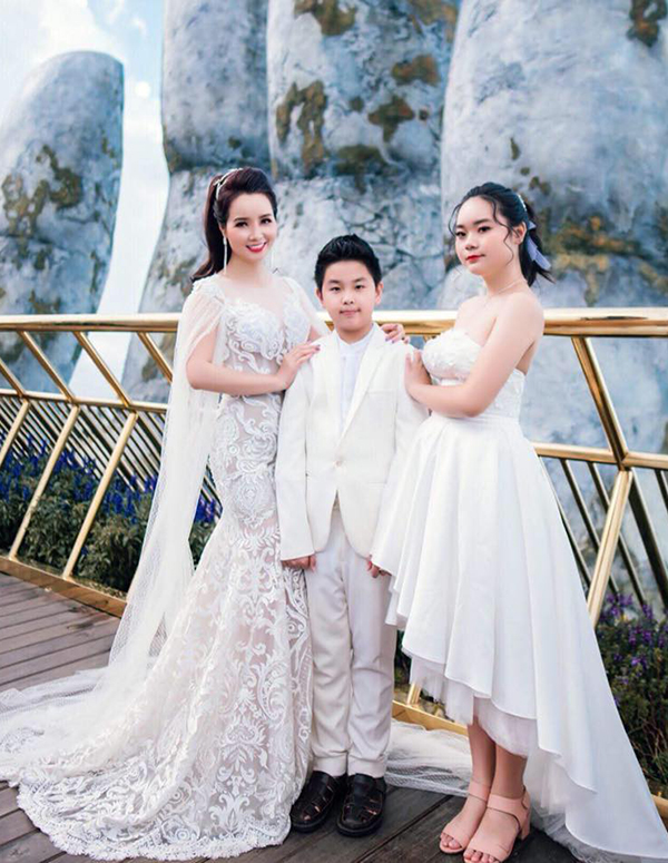 Mai Thu Huyền cùng hai con tham dự một show thời trang tại Đà Nẵng hồi giữa tháng 7/2018.