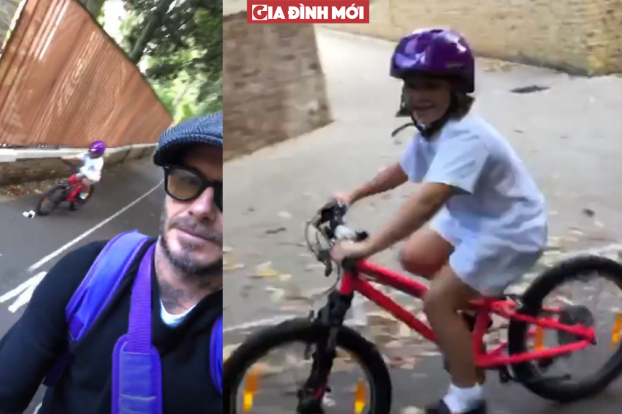 Trong đoạn clip Beckham vai đeo balo giúp con gái, còn cô bé Harper vô cùng tập trung vào việc đạp xe, không để ý gì đến việc xung quanh.
