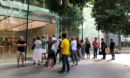Tại cửa hàng Apple Store chính thức duy nhất tại Singapore, từ tối 19/9 đã có nhiều người tụ tập sớm, trong đó không ít là người Việt. Họ tới để chuẩn bị cho việc xếp hàng mua iPhone mới vào sáng 21/9. Năm ngoái trong ngày mở bán iPhone X, ở đây đã có tới cả nghìn người tụ tập, xếp hàng và thậm chí còn gây ra cảnh hỗn loạn trước và trong ngày mở bán. Nhưng năm nay, từ tối qua, cảnh sát đã yêu cầu các nhóm tụ tập trước cửa hàng Apple Store phải giải tán, Hải Đăng, một người mua iPhone từ Việt Nam bay sang Singapore dịp này chia sẻ.