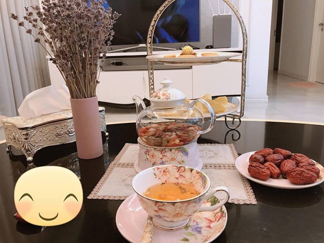 Nữ diễn viên 8X thường xuyên chia sẻ hình ảnh trong căn hộ tiện nghi.