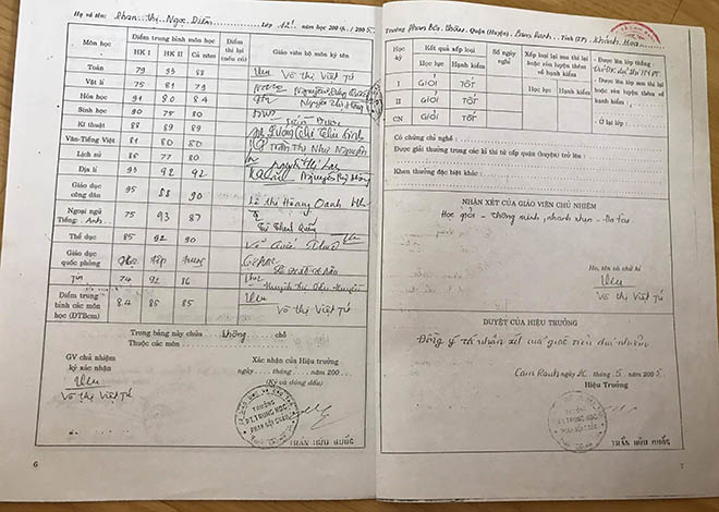 Thành tích năm học lớp 12 của Ngọc Diễm.
