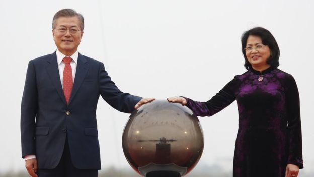 Phó Chủ tịch nước Đặng Thị Ngọc Thịnh và Tổng thống Hàn Quốc Moon Jae-in dự lễ khánh thành Viện Khoa học Công nghệ Việt Nam - Hàn Quốc hồi tháng 3/2018.