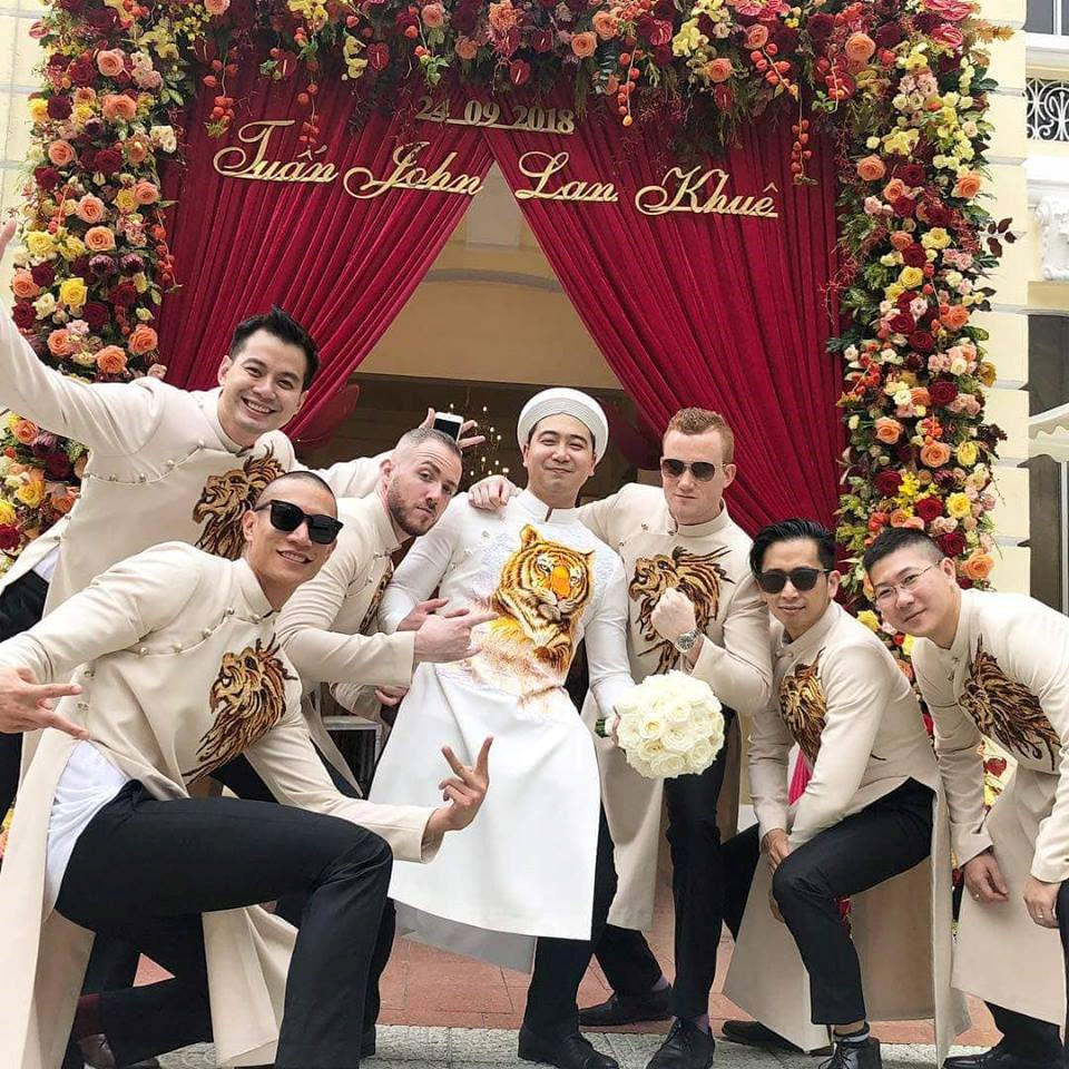 Dàn phù rể của doanh nhân John Tuấn Nguyễn cũng toàn các chàng trai đẹp.