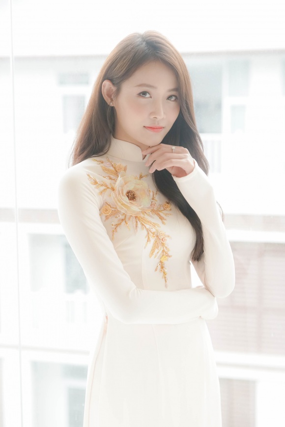 Các cô mặc áo dài màu trắng ngả hồng phấn tuyệt đẹp. Đó là các mỹ nhân của The Face như Trương Mỹ Nhân, Tú Hảo, Mai Ngô, Ngọc Duyên, Lilly Nguyễn...