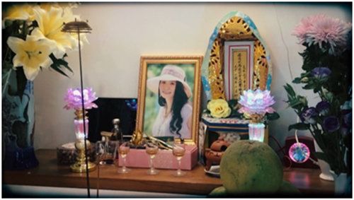 Bàn thờ và di ảnh chị Hương vợ anh Thân.