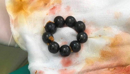 Nam sinh tiểu học nhập viện vì tắc ruột hoàn toàn do 9 viên bi sắt nằm kín vùng ruột non. May mắn được các bác sĩ phẫu thuật kịp thời nên đã không còn nguy hiểm. Cơ quan chức năng đang điều tra nguyên nhân nam sinh nuốt 9 viên bi sắt vào bụng.