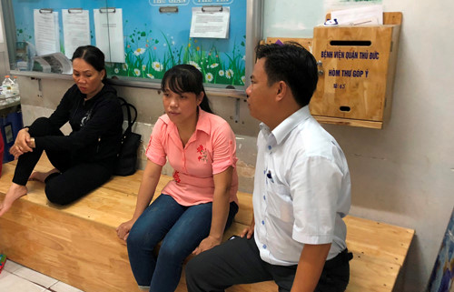Thầy Trần Quang Vinh, hiệu trưởng trường tiểu học An Bình B, đến thăm hỏi phụ huynh và em L. tại bệnh viện.