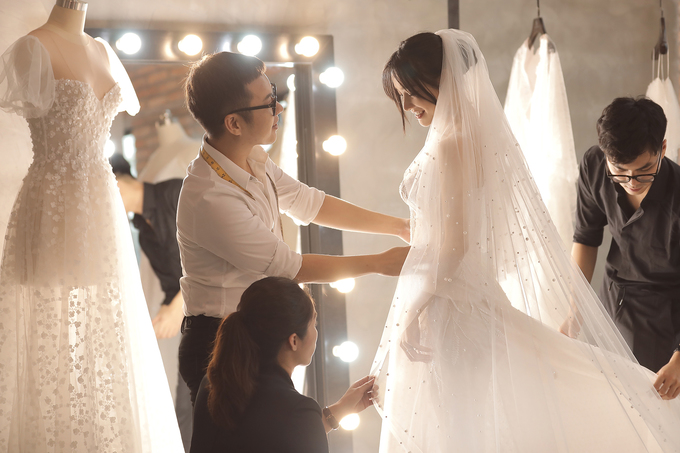 Nhã Phương đặt Chung Thanh Phong thiết kế ba bộ váy cưới, trong đó có váy corset đính cườm.