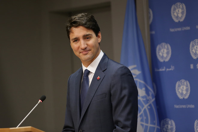 Thủ tướng Trudeau phát biểu tại một sự kiện trong khuôn khổ kỳ họp Đại hội đồng Liên Hợp Quốc ở New York hôm 26/9. Ảnh: Reuters.