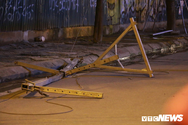 Vật liệu công trình rơi xuống phố tại hiện trường.