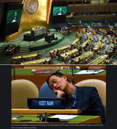 khi Phấc Niễng nói LHQ sẽ là đầu tàu tiến lên....XHCN...các đại biểu bỏ chạy ...còn cán ngố quen thói vô họp để ngủ bất kể ở đâu....hahahahha