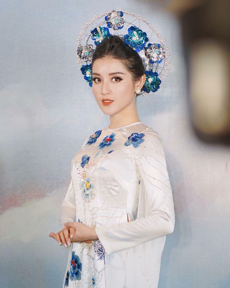 Á hậu Huyền My nhận được nhiều lời khen ngợi từ phía cộng đồng nhờ sở hữu khuôn mặt xinh đẹp không tỳ vết, thân hình gợi cảm khi diện bộ áo dài trắng được thiết kế tinh tế.