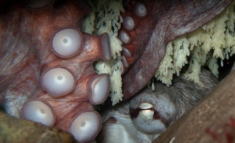 Về cơ bản, bạch tuộc cái khi chưa kết đôi là những kẻ săn mồi thượng thừa. Nhưng khi đẻ trứng, chúng làm mọi cách để ở lại trông tổ, không đi bất kỳ đâu. Sau khoảng 4 ngày, bạch tuộc không ăn gì nữa, sức khỏe của chúng sẽ cũng giảm xuống.