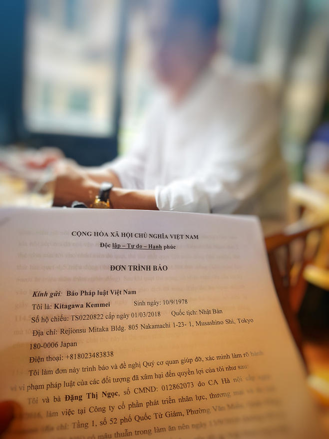 Ngay sau đó, ông Kitagawa Kemmei đã liên hệ với Đại sứ quán Nhật Bản tại Hà Nội đề nghị được giúp đỡ. Đồng thời, ông cũng liên hệ với luật sư, tiến hành làm đơn tố cáo gửi đến Công an thành phố Hà Nội đề nghị làm rõ hành vi cưỡng ép, chiếm đoạt tài sản và thu giữ hộ chiếu.